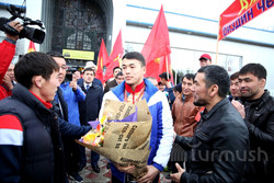 Азия чемпиону Акжол Махмудовду Ошто салтанаттуу тосуп алышып, мэрия 50 миң сом сыйлык берди
