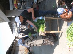 Ош шаарынын Кара-Суу көчөсүндө жол бойлой отурган сатуучулар базар ичине жайгаштырууга каршы болуп жатышат