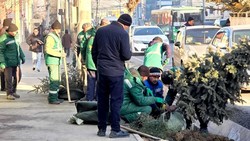 На улице Курманжан датка в Оше пересаживают более 200 тянь-шаньских елей