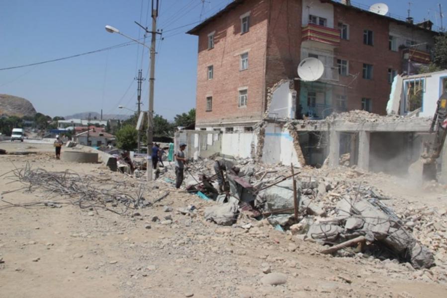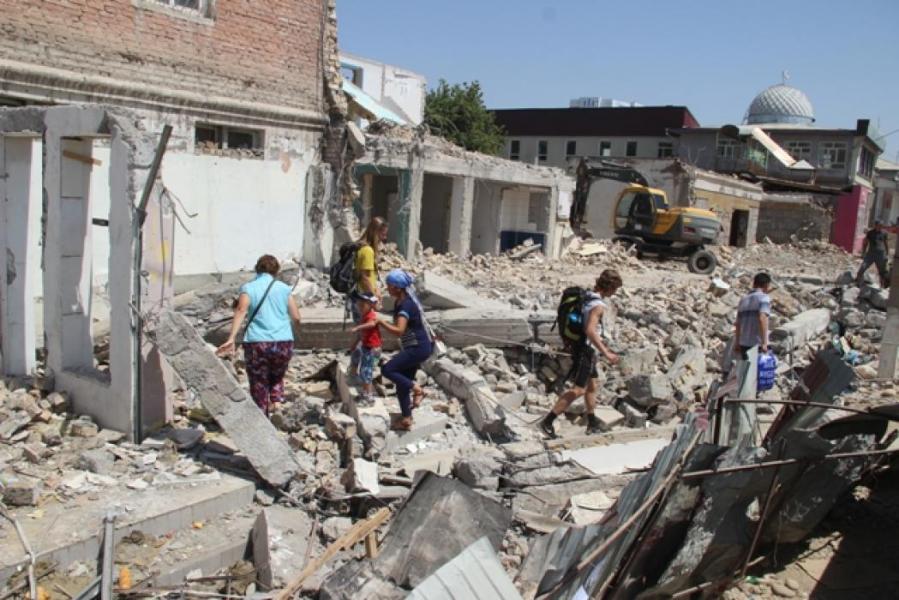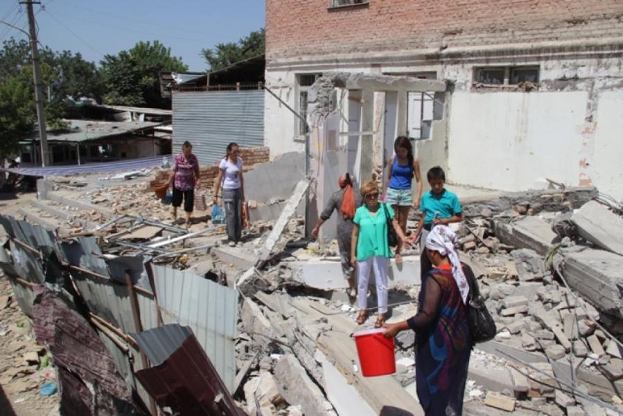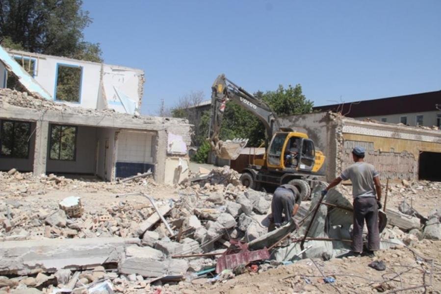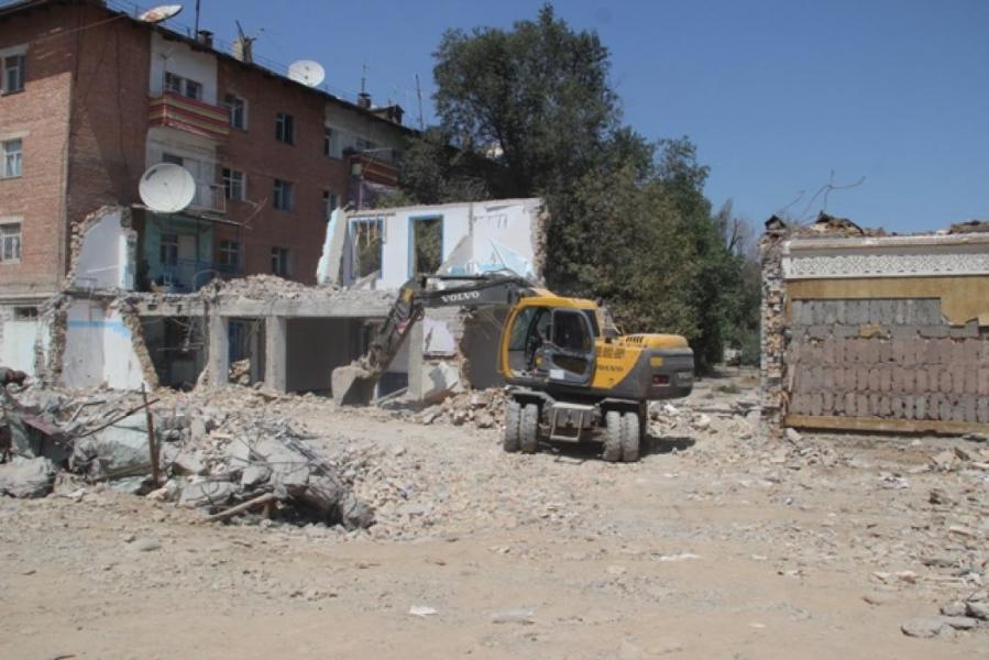 Фоторепортаж - В Оше по улице Навои производится снос конструкций, мешающих строительству эстакадного моста