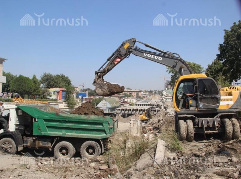 В Оше на эстакадном мосту по улице Навои проходят работы по подготовке к строительству подъездных путей (фото)