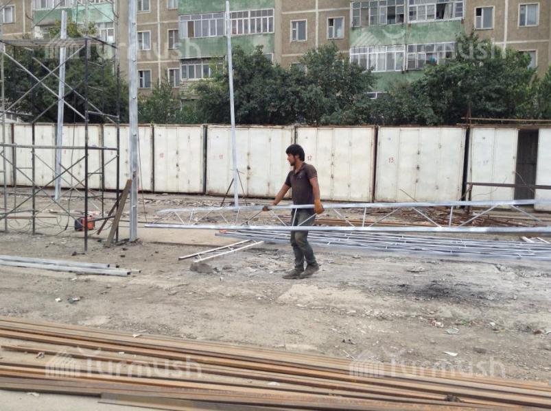 Фото — У входа в вещевой рынок Оша строится новый крытый павильон