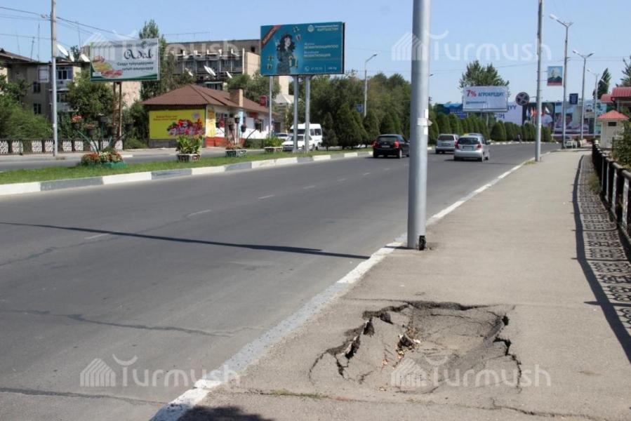В Оше по улице Абдыкадырова на мосту провалилась часть тротуара (фото)
