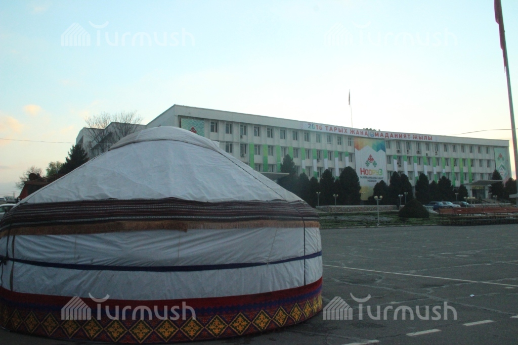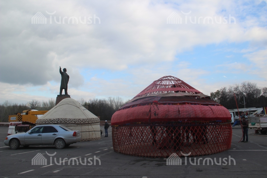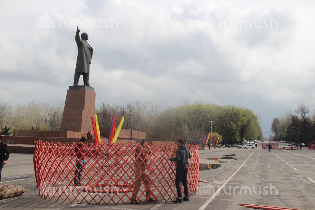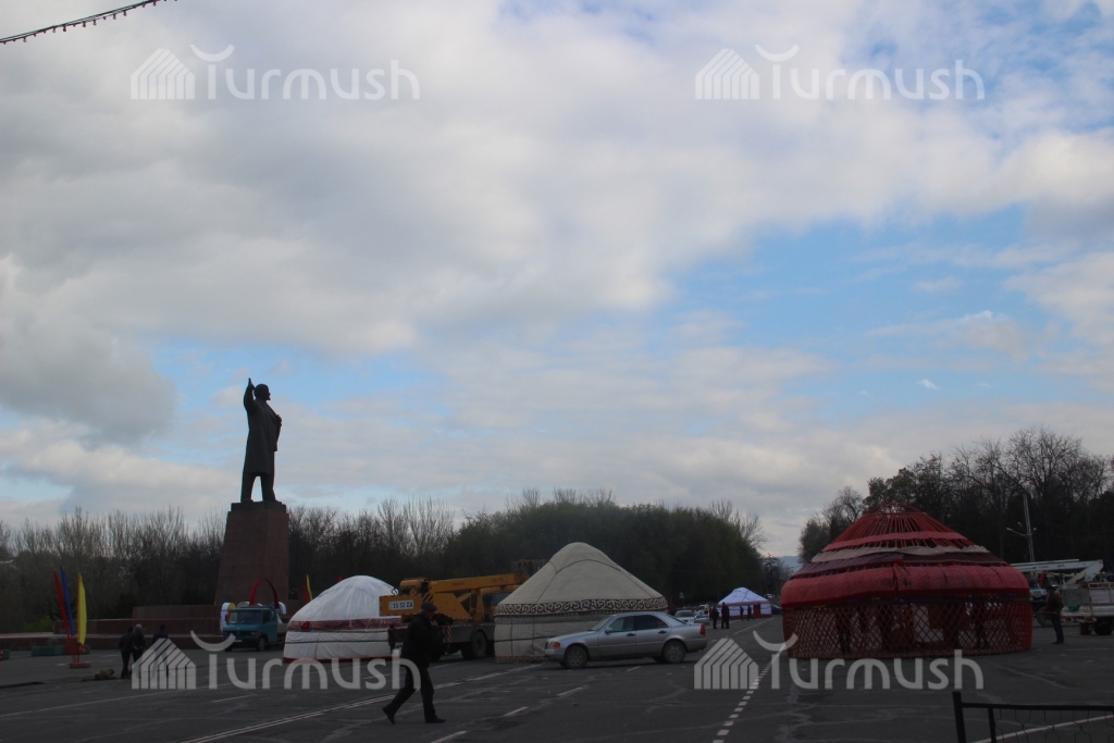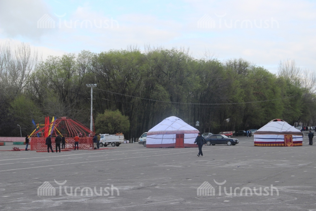 Фото — Подготовка к Ноорузу на центральной площади Оша