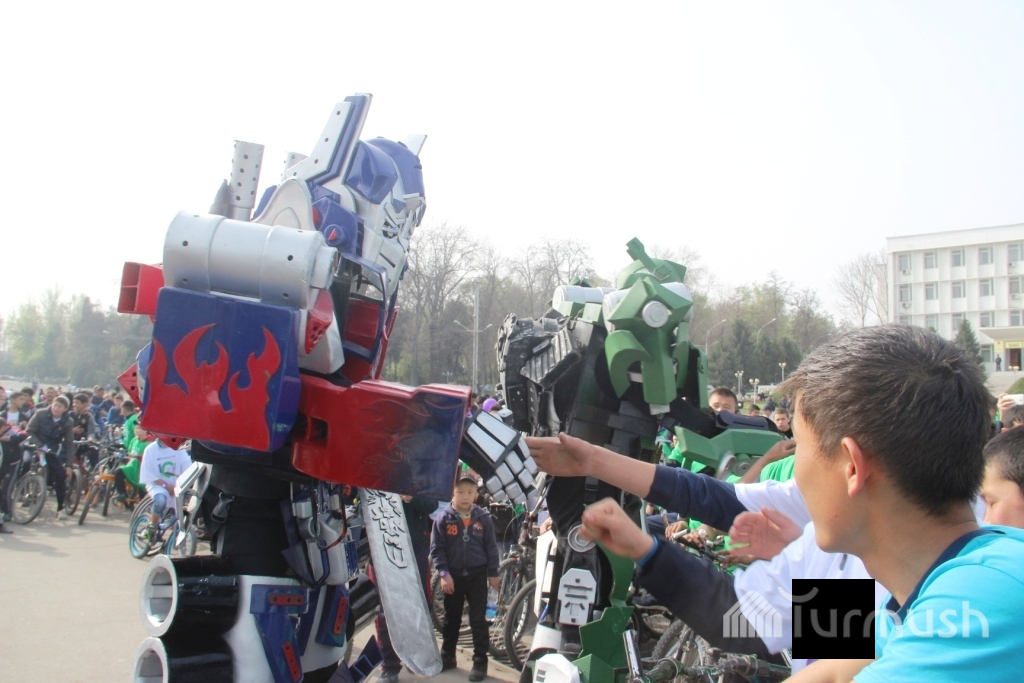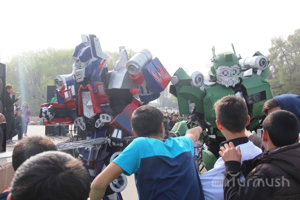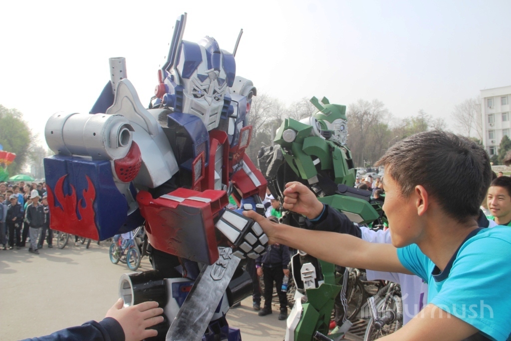 Фото — Роботы-трансформеры на праздничном мероприятии в Оше