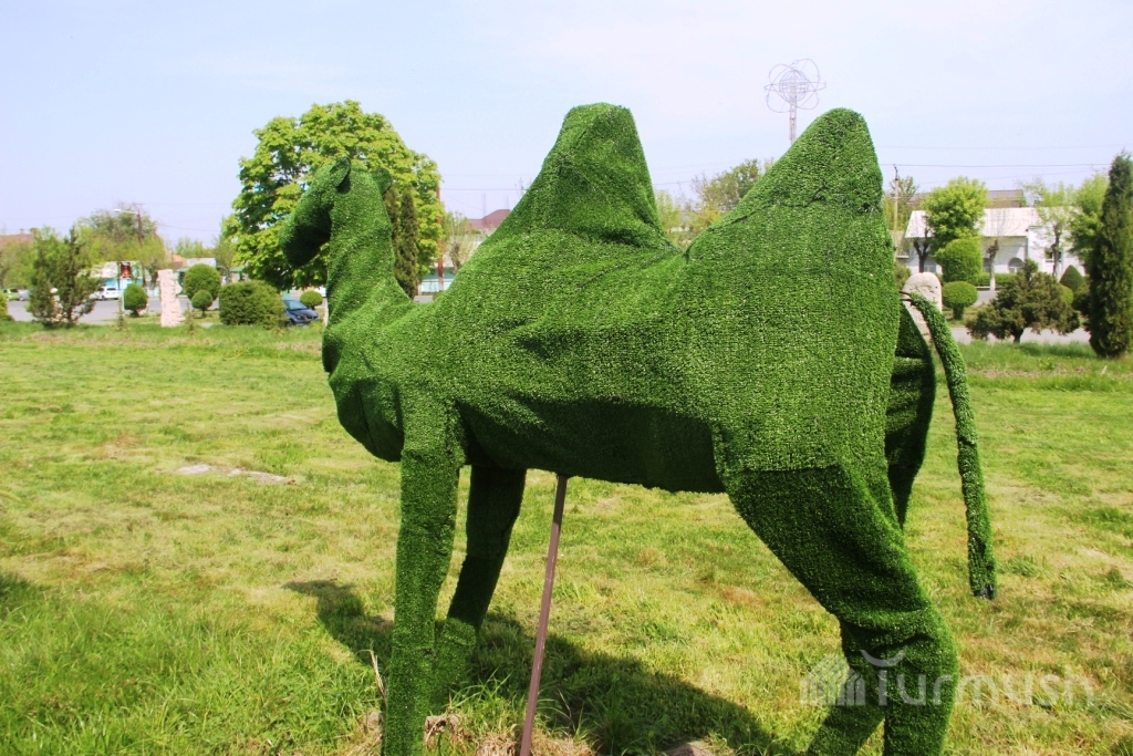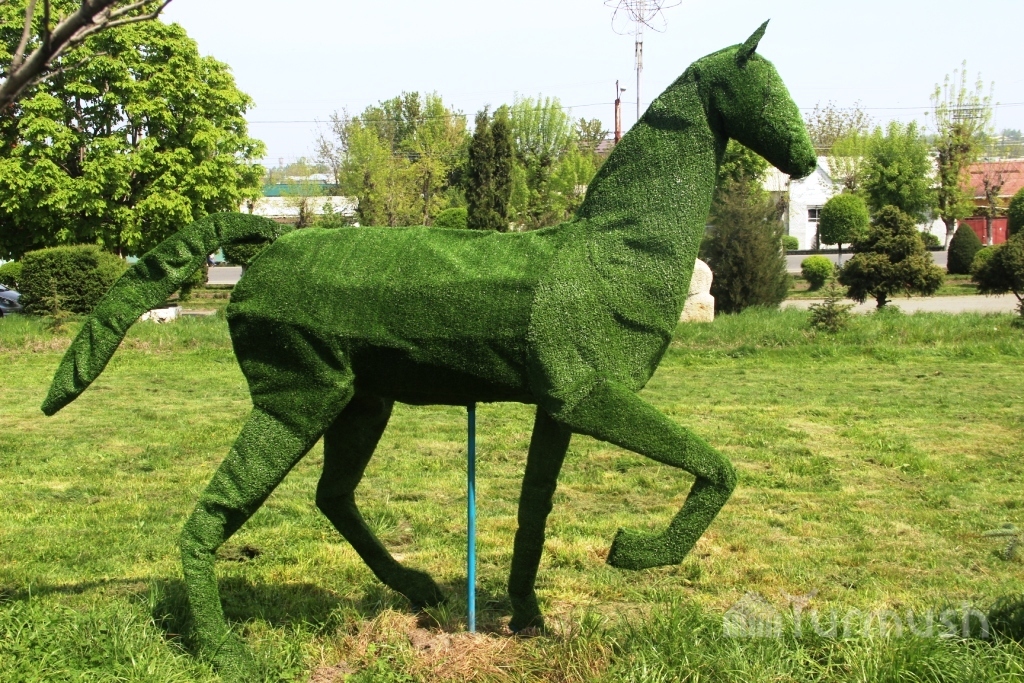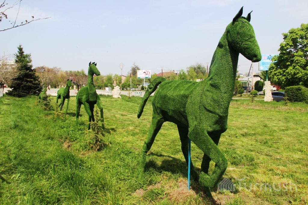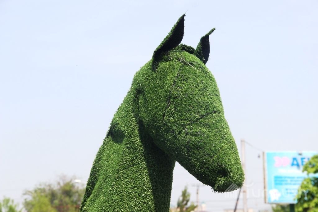 В Оше в сквере у национального театра им. С.Ибраимова установлены фигуры животных из зеленых насаждений (фото)