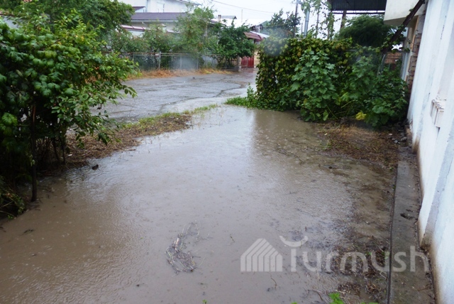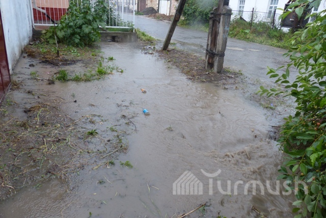 Фото, видео — В Оше потоки дождевой воды затопили дворы и земельные участки в частном секторе