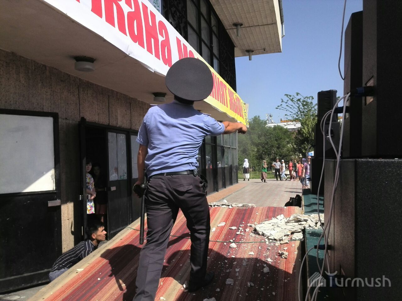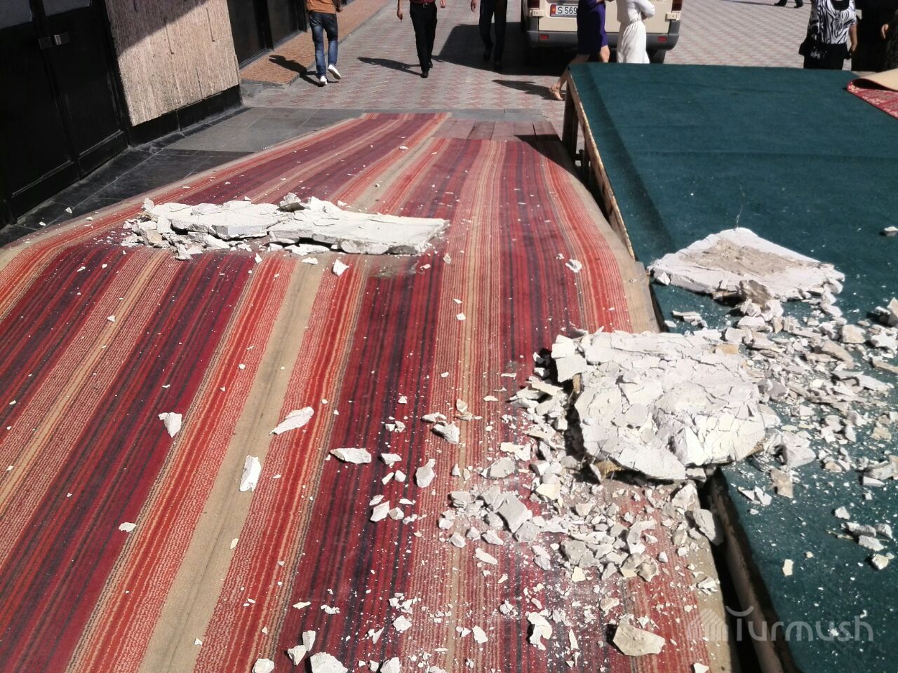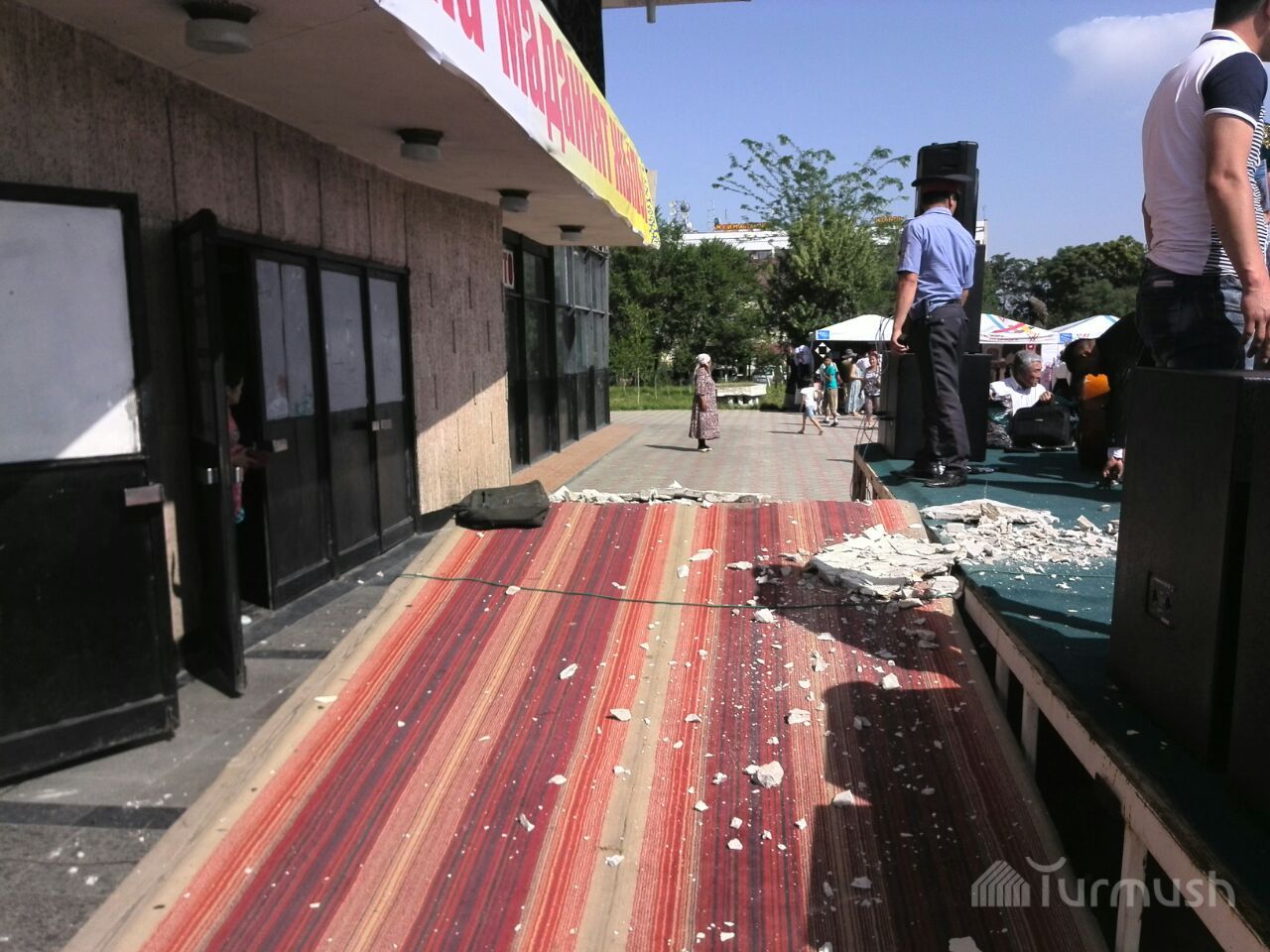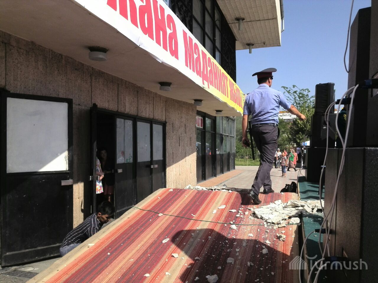 Фото — В Оше бетонная плита, упавшая с потолка Национального драмтеатра, едва не убила участников этнофестиваля