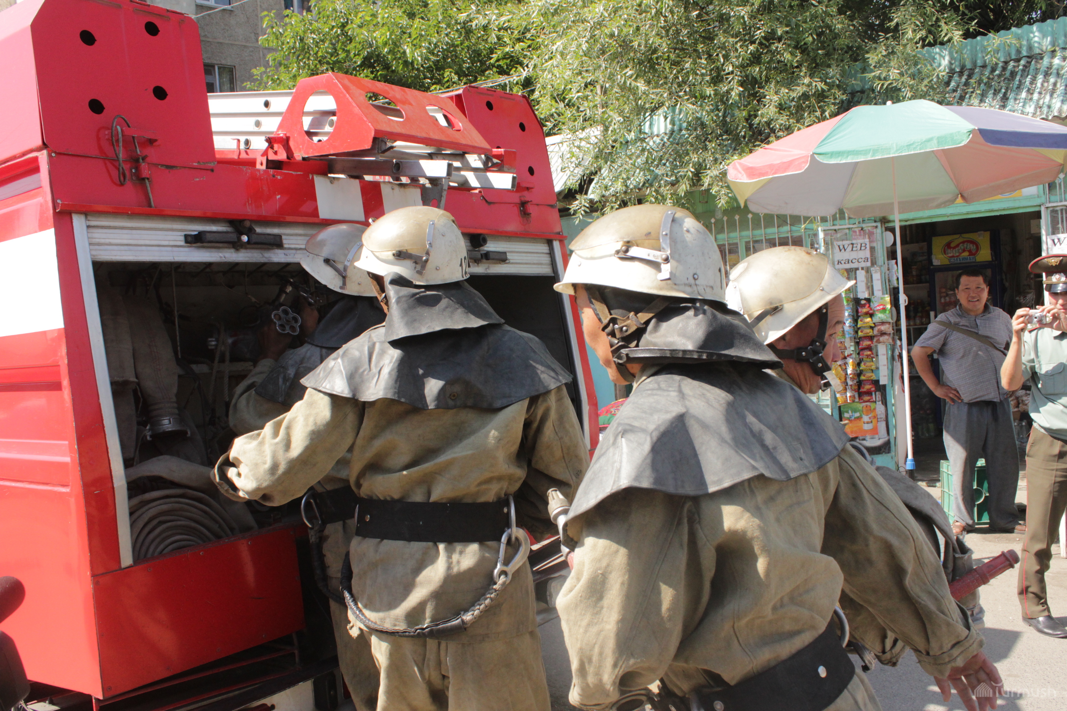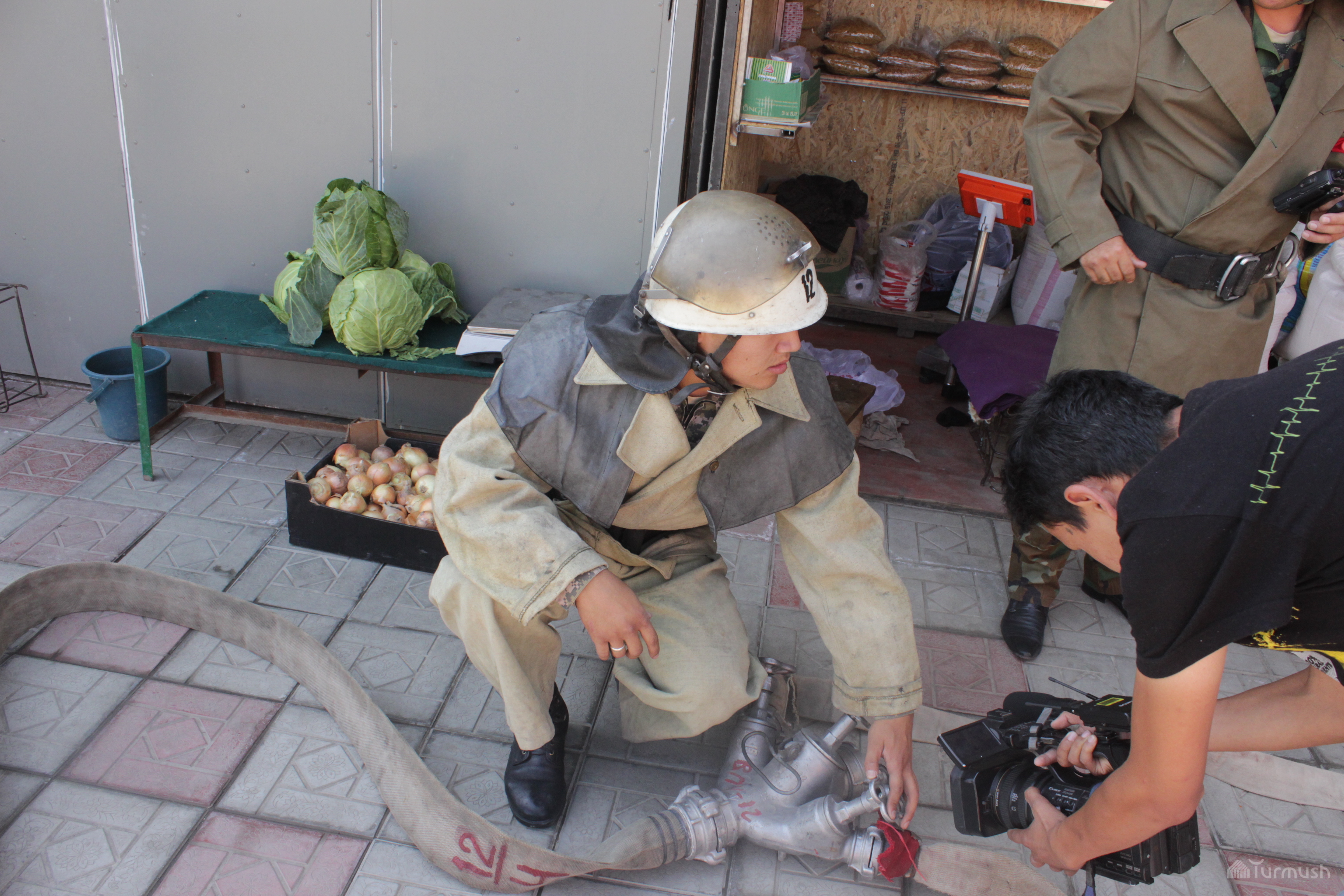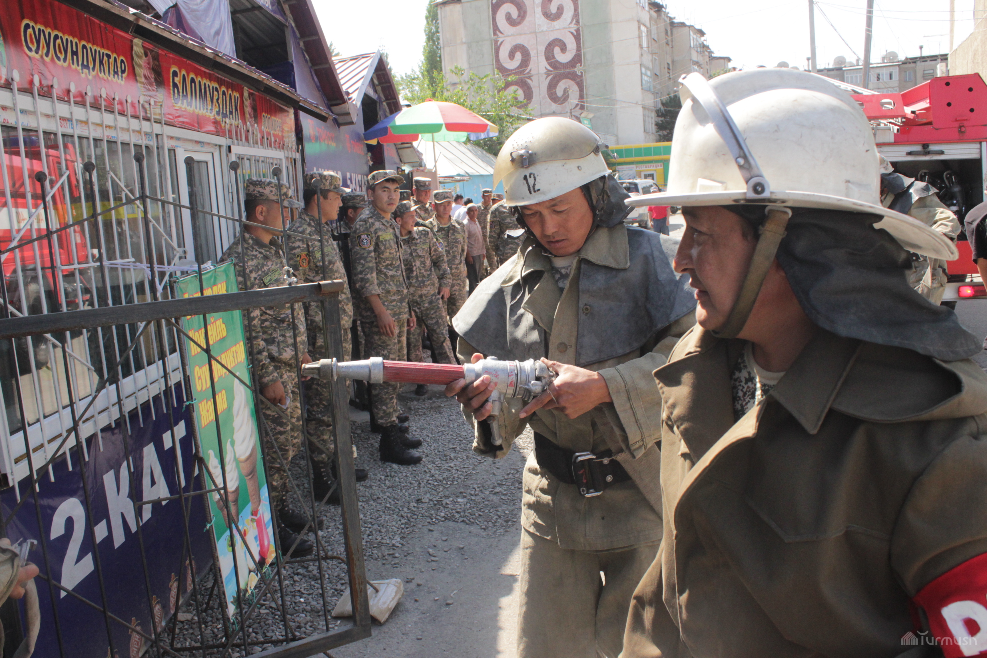 В городе Ош на рынке «Арча» прошло пожарно-тактическое учение (фото)