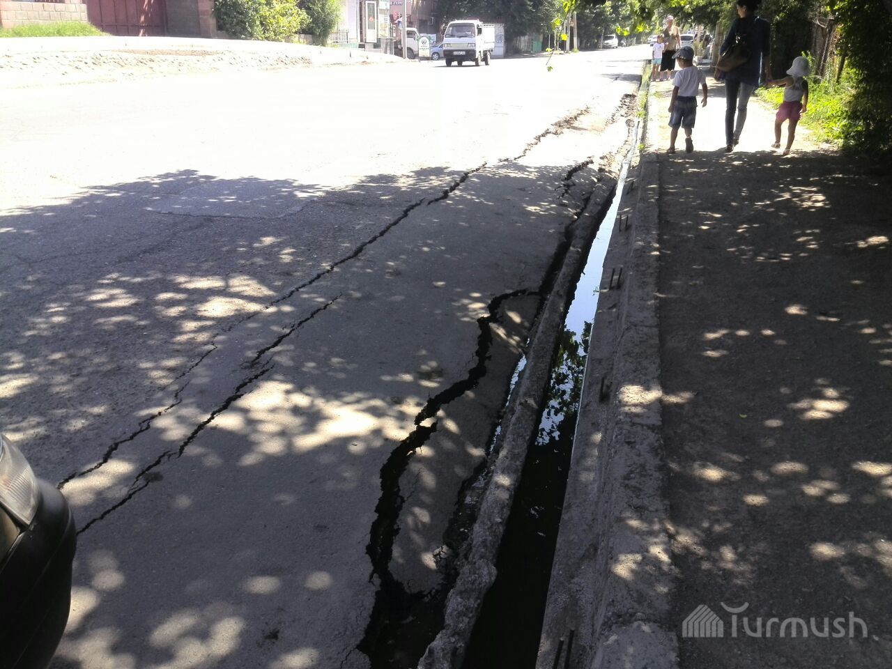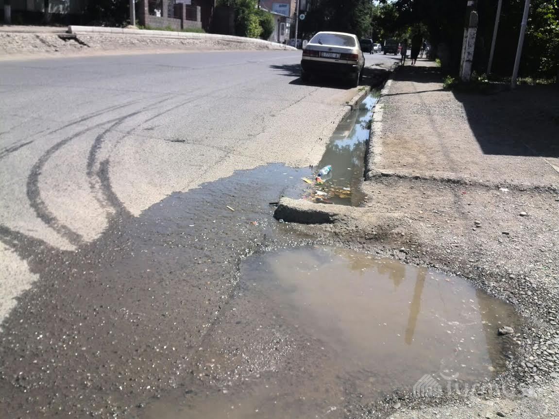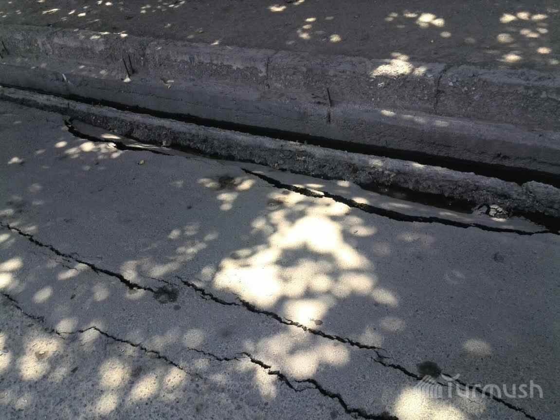 В городе Ош на одной из улиц начал проваливаться асфальт (фото)