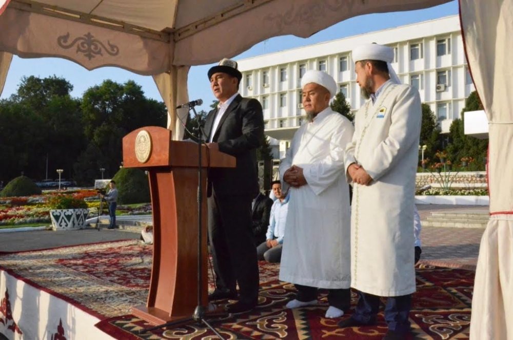 На праздничный Айт намаз в Оше приехали первый замглавы Аппарата президента А.Карашев, первый замглавы МВД С.Омурзаков (фото)