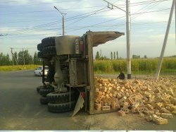 В Оше перевернулся «КамАЗ» с кирпичами