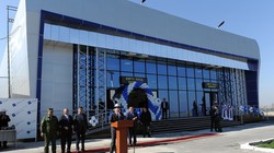 Фото — С.Исаков прилетел в аэропорт города Ош на вертолете и открыл новый терминал