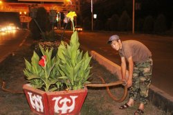 - В Оше производится ежедневный полив цветов и зеленых насаждений 150 тоннами воды